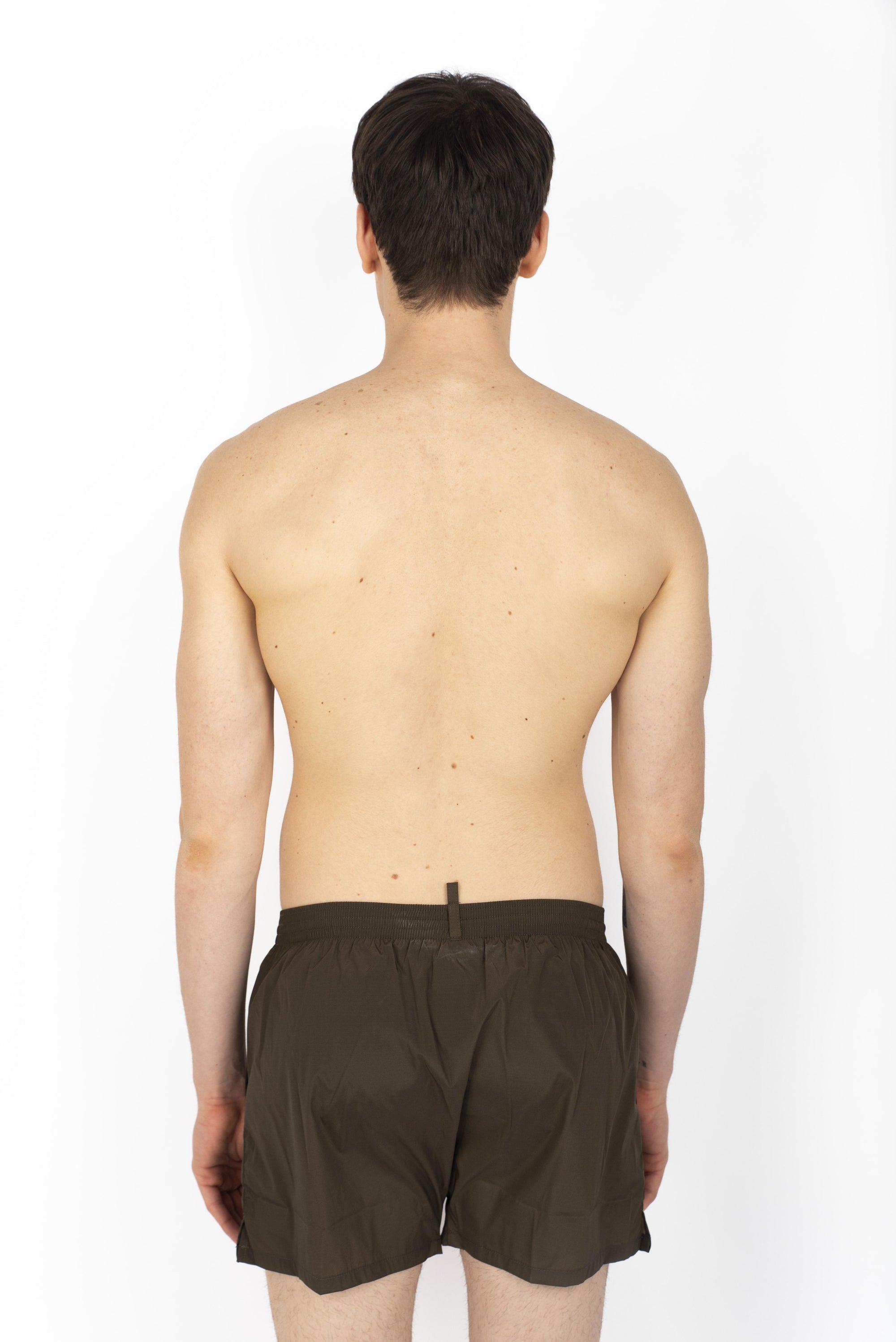 Brown midi swim boxer with black side logo