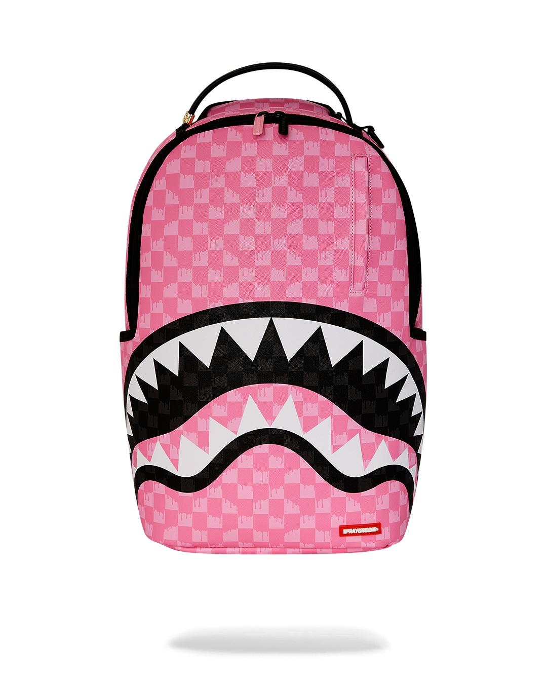 Pink and black drip check backpack
