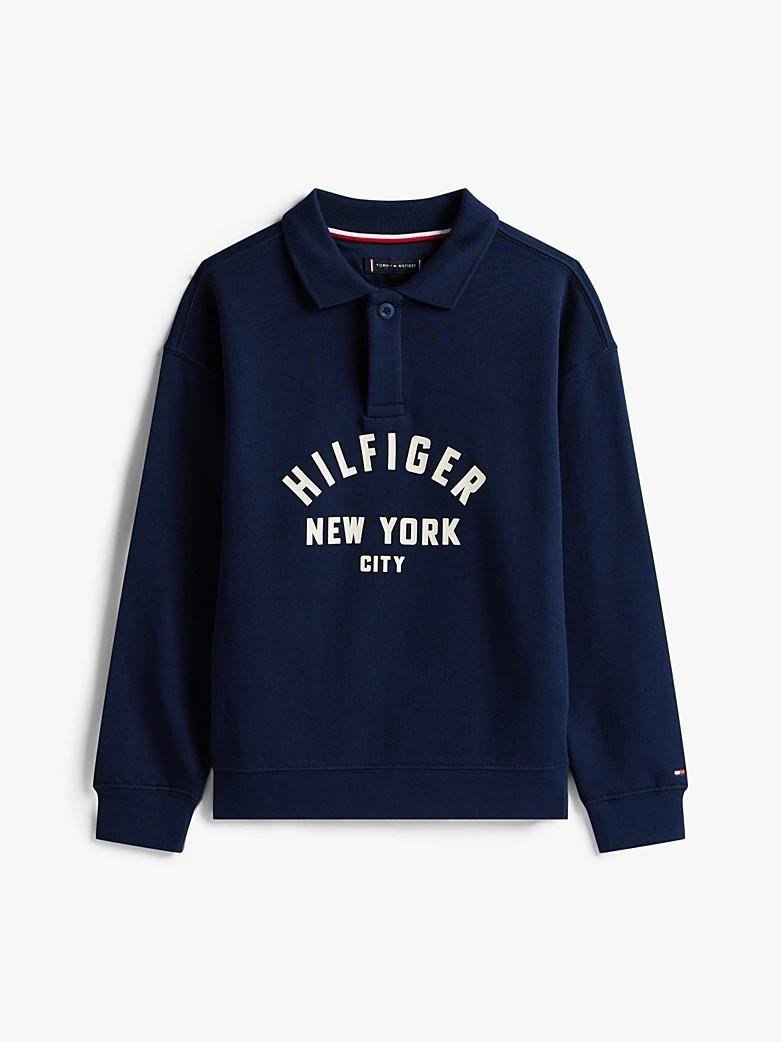 Felpa con colletto a polo e grafica curva