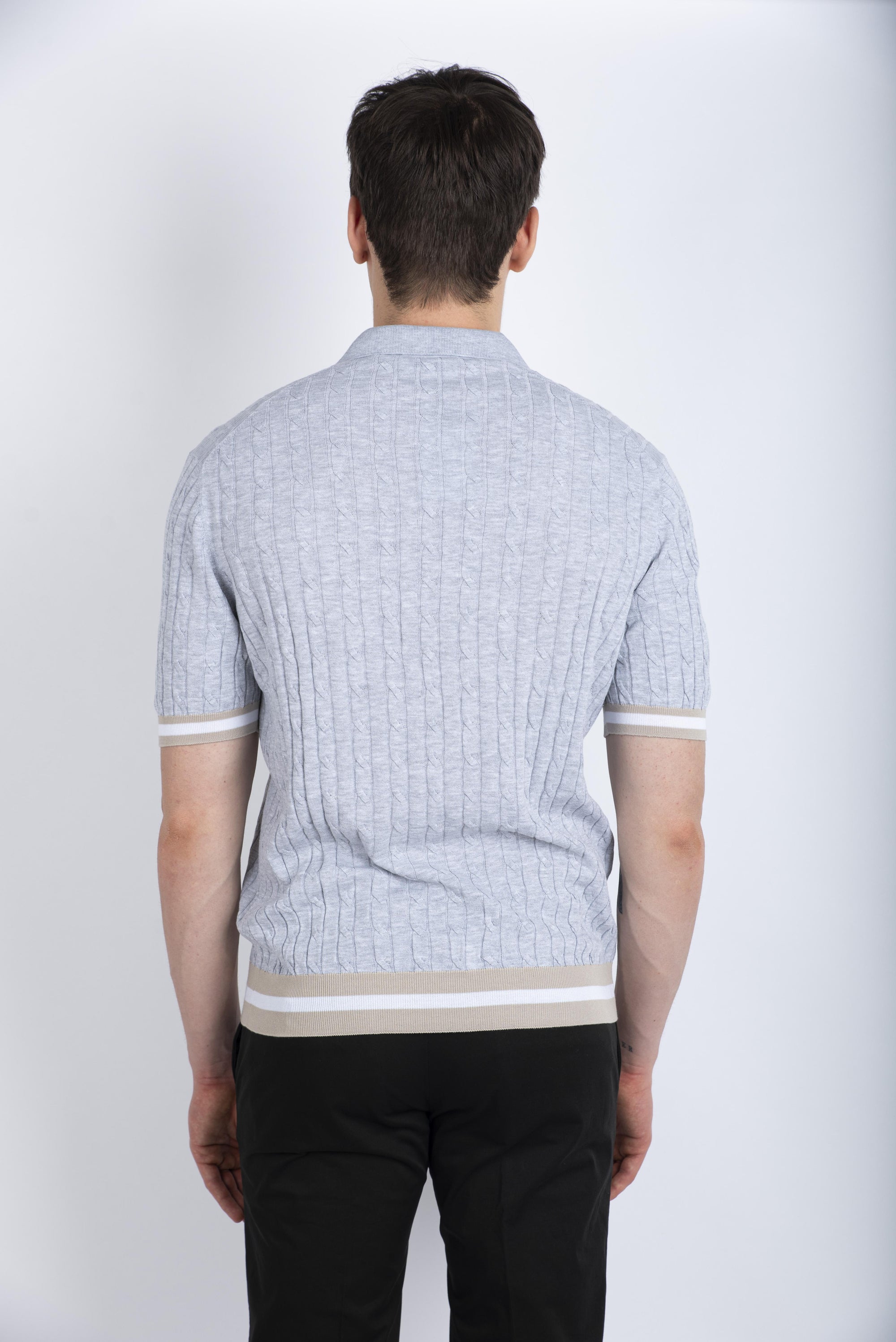 Polo skipper in maglia a trecce e coste grigio